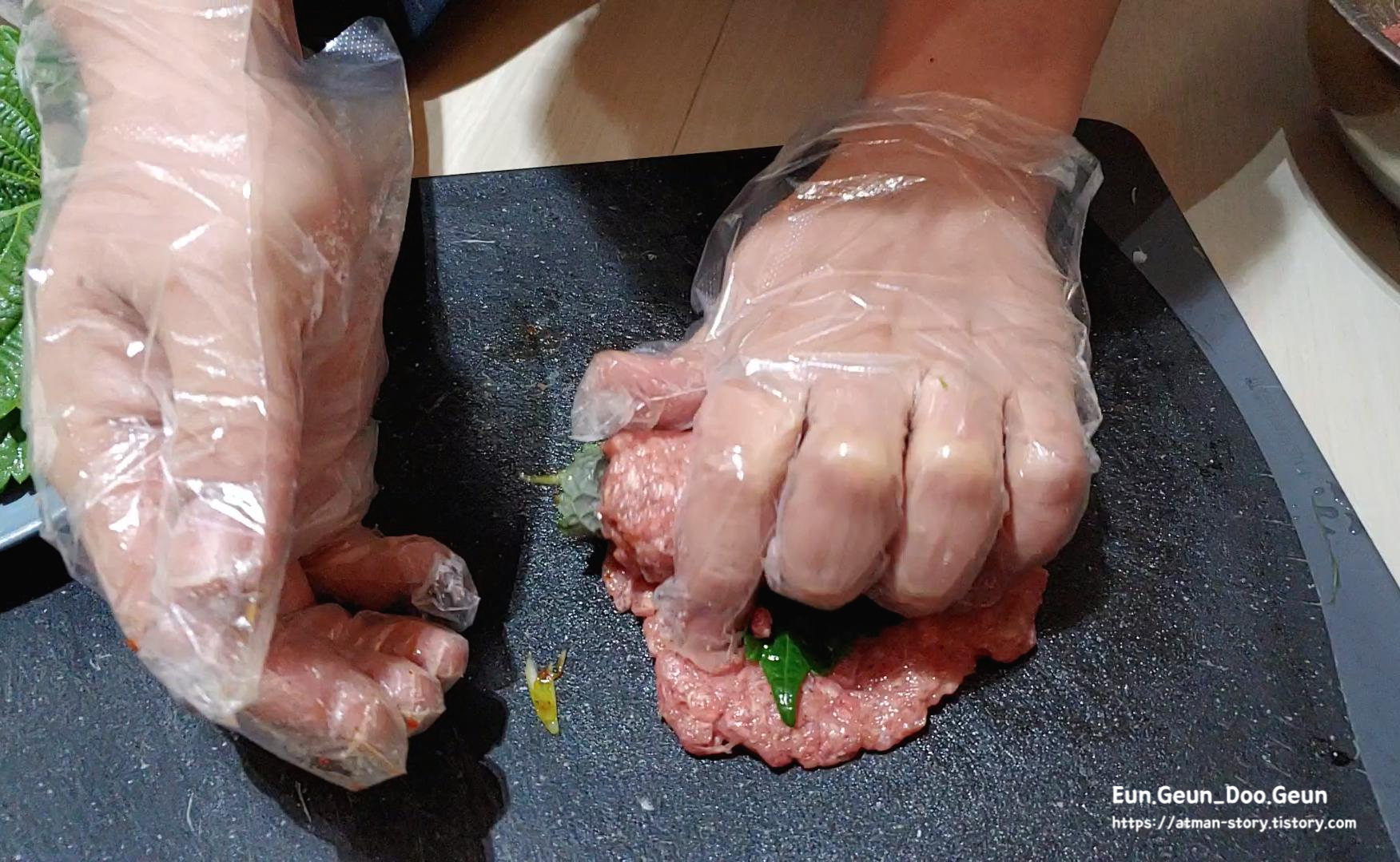 -> 저희는 집에있던 다진 돼지고기 반, 다진 소고기 반 사용